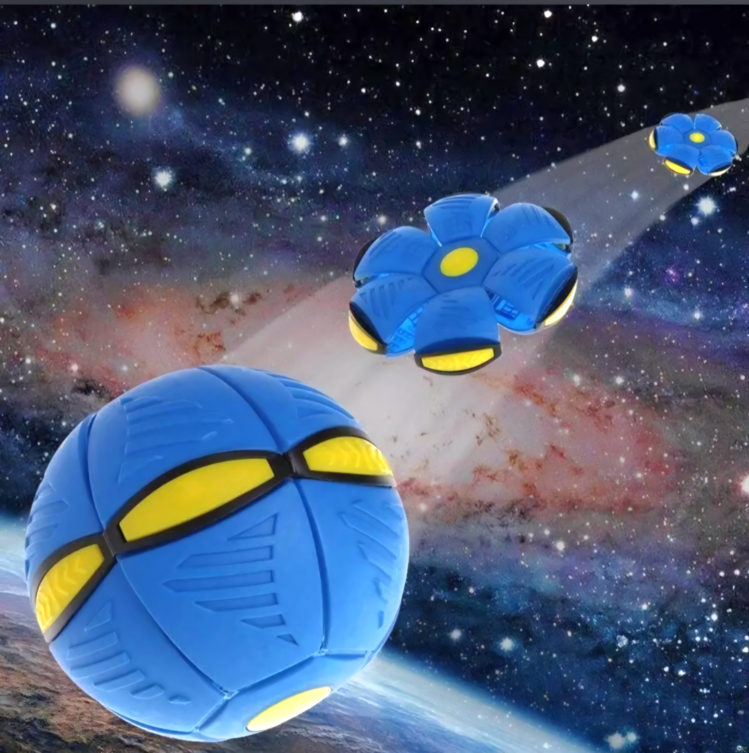 Ta niezwykła zabawka to prawdziwa transformacja w ruchu! Rzucona jak frisbee, w locie zamienia się w piłkę. A to jeszcze nie wszystko – przy uderzeniu o ziemię rozbłyska jasnym światłem, przyciągając wzrok i dodając emocji każdej grze.
