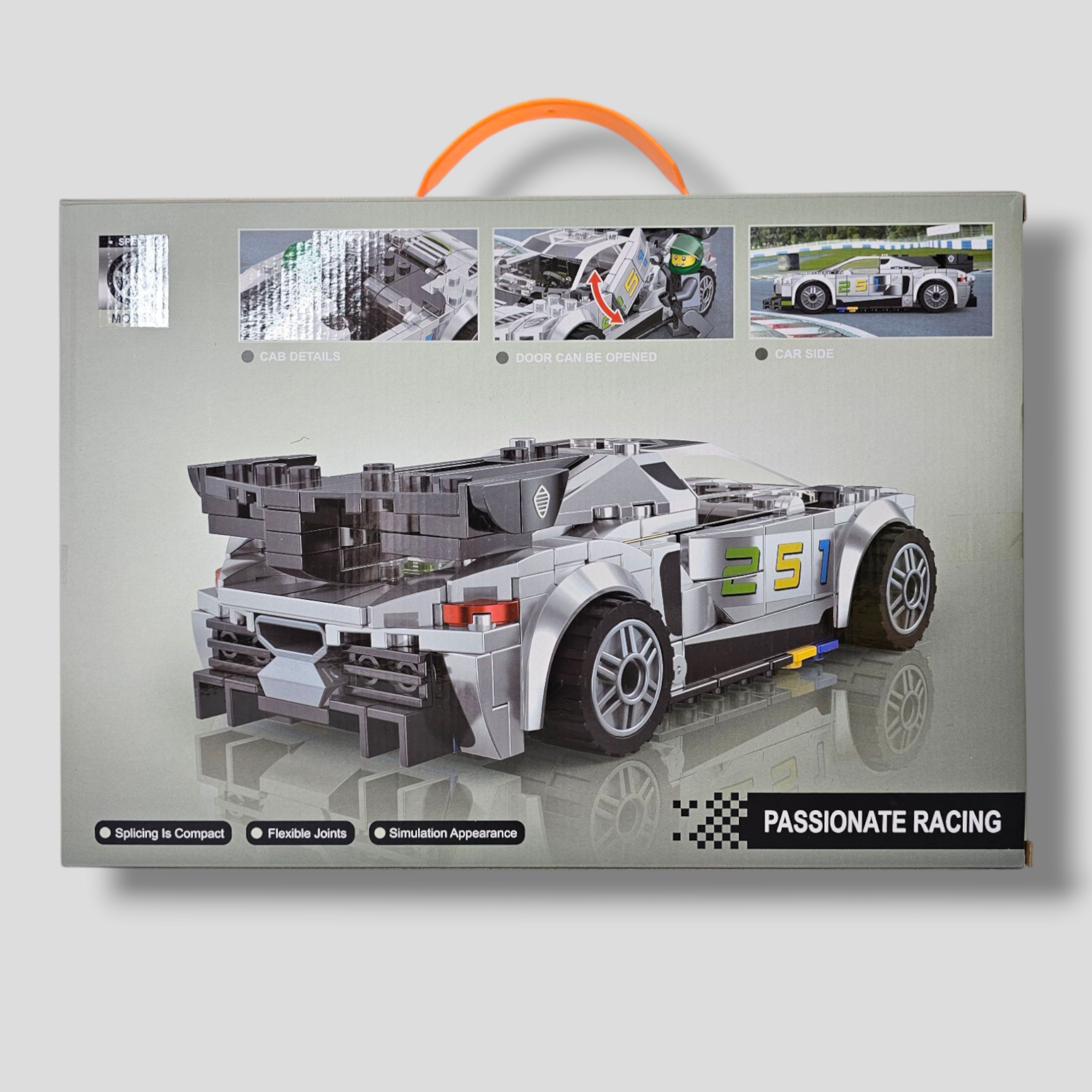 Szybkość, styl i precyzja – zbuduj elegancki biało-srebrny samochód wyścigowy z realistycznymi detalami i otwieranymi drzwiami. Idealna zabawka dla małych konstruktorów i fanów sportowej motoryzacji.